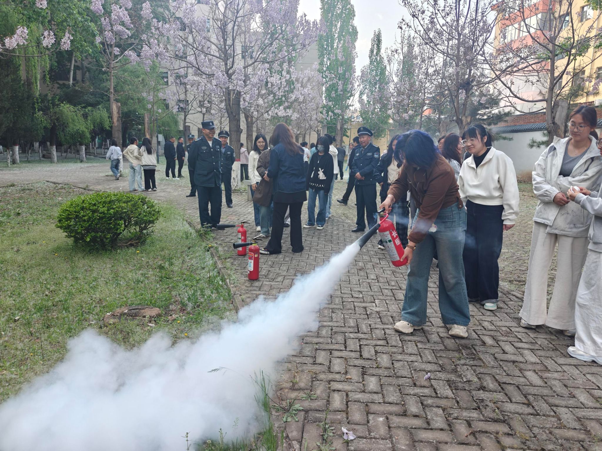 安全培训后,全体参训人员在药学院开展了安全应急演练,本次演练结合药学专业特点,预设学生在实验过程中被浓硫酸灼伤和学院实验室、办公区域突发火情两个场景,不设推演,通过实战检验师生面对紧急情况的应急处置能力和学院安全应急预案的响应能力。